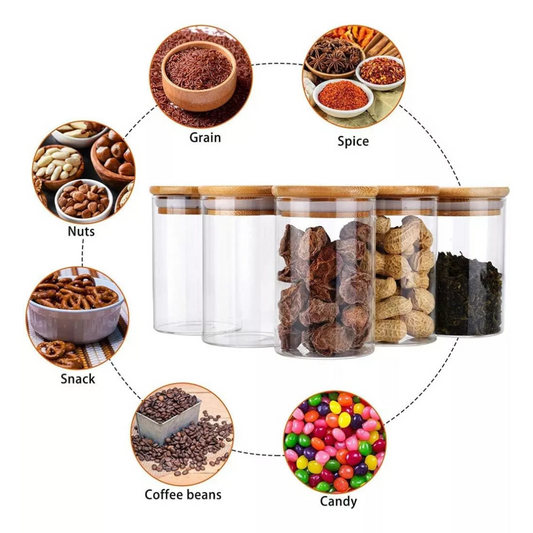 Set 4 Frascos de Vidrio Tapa Bambu Piramidal