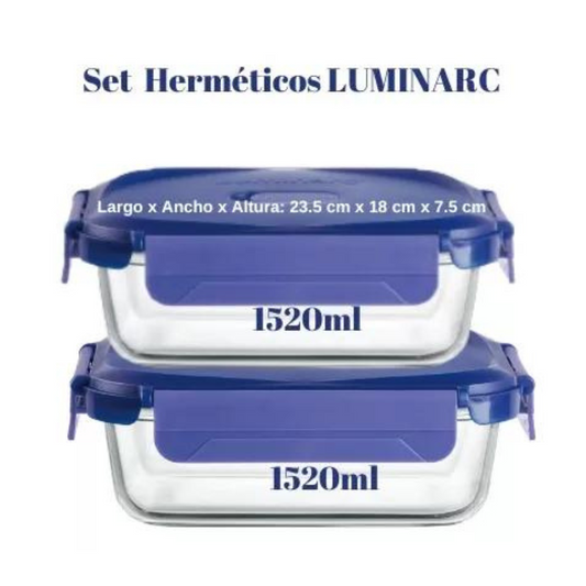 Set 2 Taper Contenedores Herméticos Luminarc (1.040 Ml - 1.520 ML)