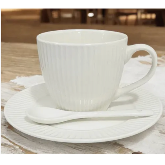 Set 2 Tazas Cafe Ceramica con Plato y Cuchara 250 Ml