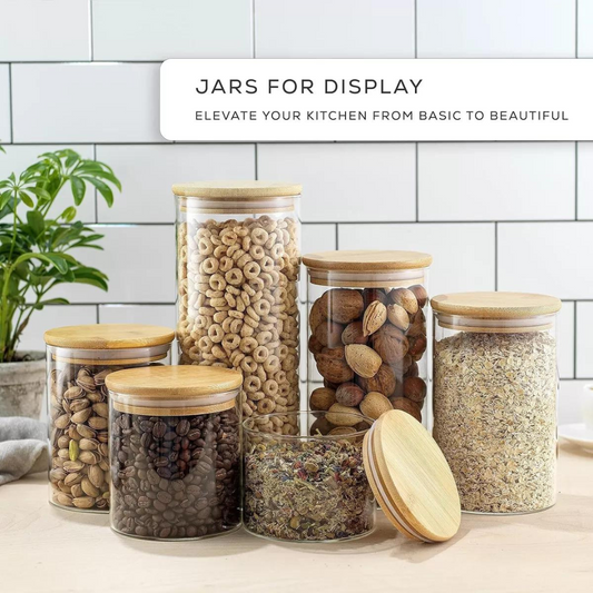 Set 6 Frascos Organizadores de Vidrio Tapa Bambu