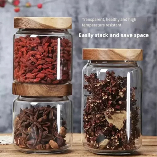 Frasco de Vidrio Tapa Madera 1000 ML Allegra