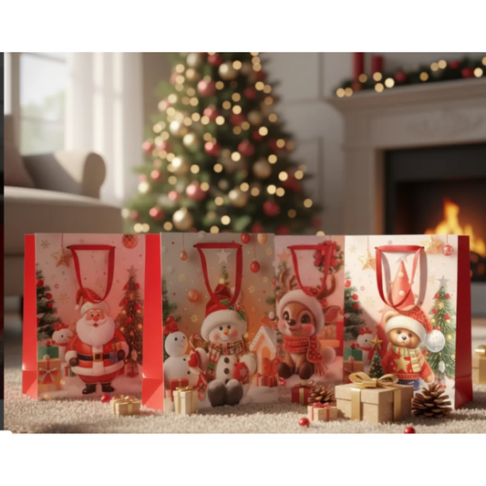 12 Bolsas De Regalo Navidad Mediana 32x26cm Pascua Navidad