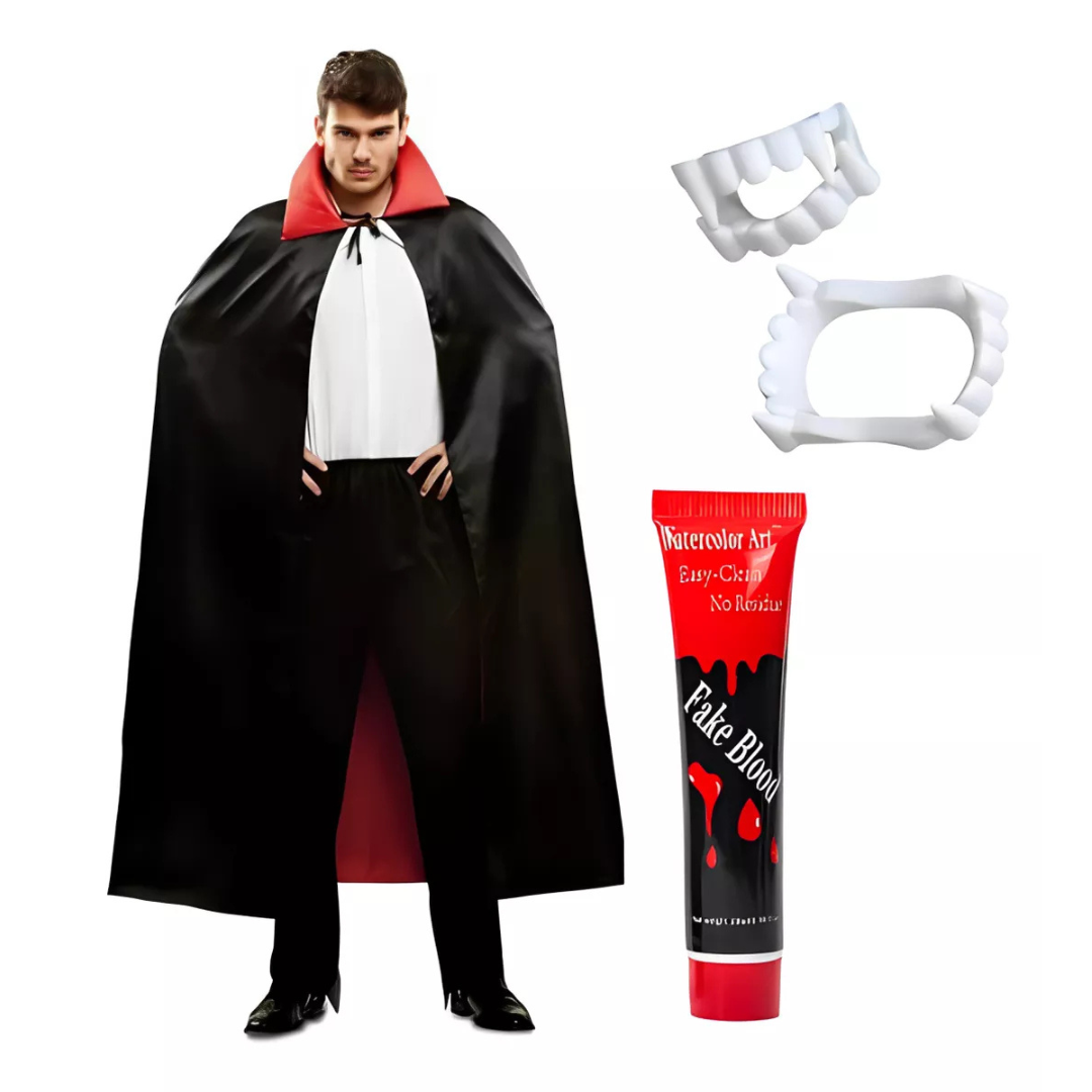 Este set es perfecto para quienes buscan un disfraz rápido, efectivo y aterrador. Con la combinación de la capa, la sangre falsa y los colmillos, tendrás un conjunto que destaca tanto por su sencillez como por su capacidad para impresionar en cualquier fiesta o evento de disfraces. ¡Sé el vampiro que todos recordarán!
