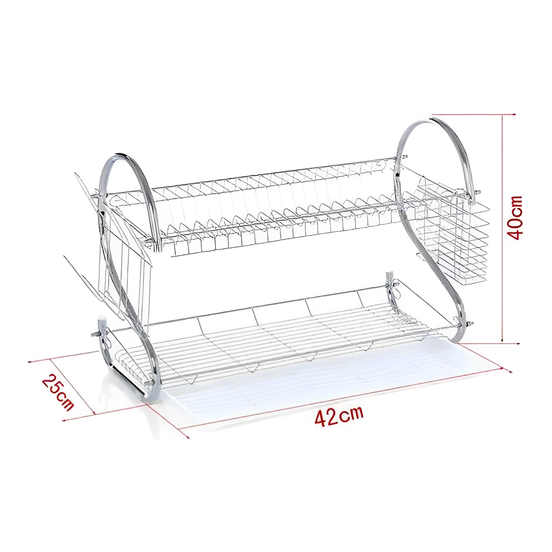 Este escurridor de platos de acero inoxidable de 2 niveles no solo es una herramienta práctica para tu cocina, sino también un elemento decorativo que aporta un toque de elegancia y modernidad. ¡Optimiza tu espacio y mantén tu cocina organizada con este indispensable accesorio!