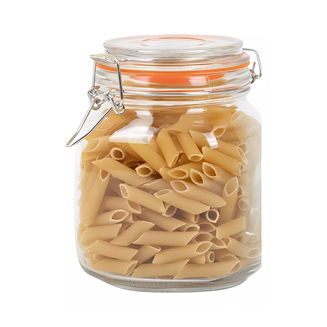 Con una capacidad generosa de 1000ml, este tarro proporciona suficiente espacio para guardar una cantidad considerable de alimentos, como cereales, arroz, pasta, galletas, frutos secos y mucho más. También es perfecto para almacenar ingredientes de cocina, como harina, azúcar, especias y conservas caseras.