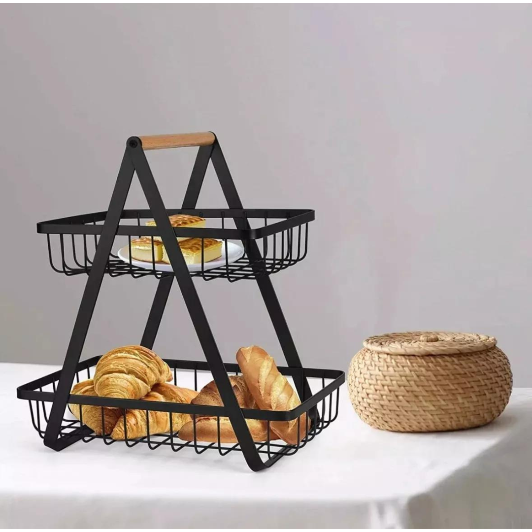Organiza tus frutas, verduras, panes, postres, condimentos y mas con estilo gracias esta repisa de Mesa de 2 Niveles para el Hogar. Perfecto para mantener tu cocina ordenada.