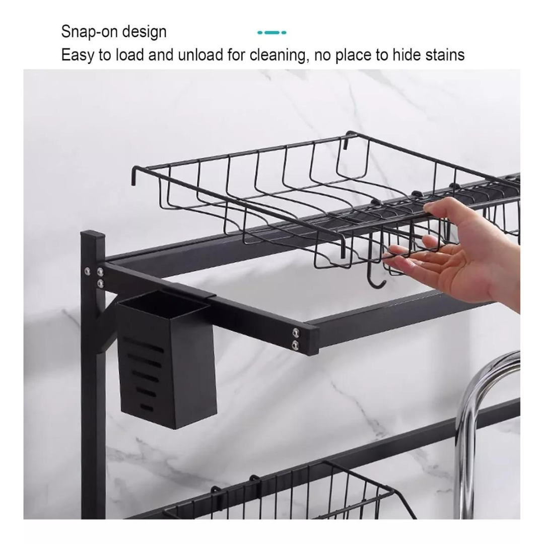 Su estructura de mesa es robusta y estable, asegurando que tus platos estén seguros mientras secan al aire.