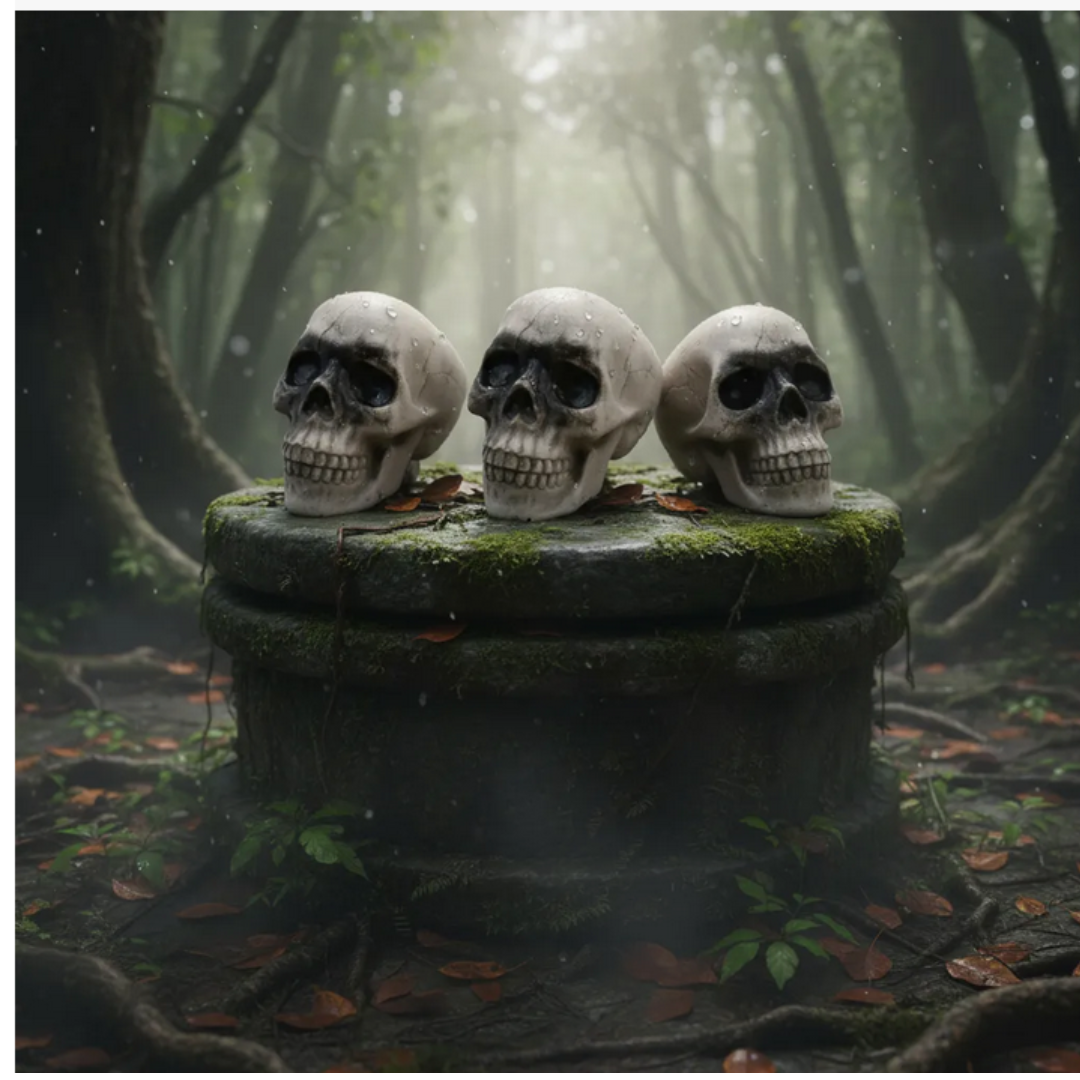 Este pack incluye tres cráneos de plástico diseñados para aportar un toque elegante y auténtico a la decoración de Halloween.