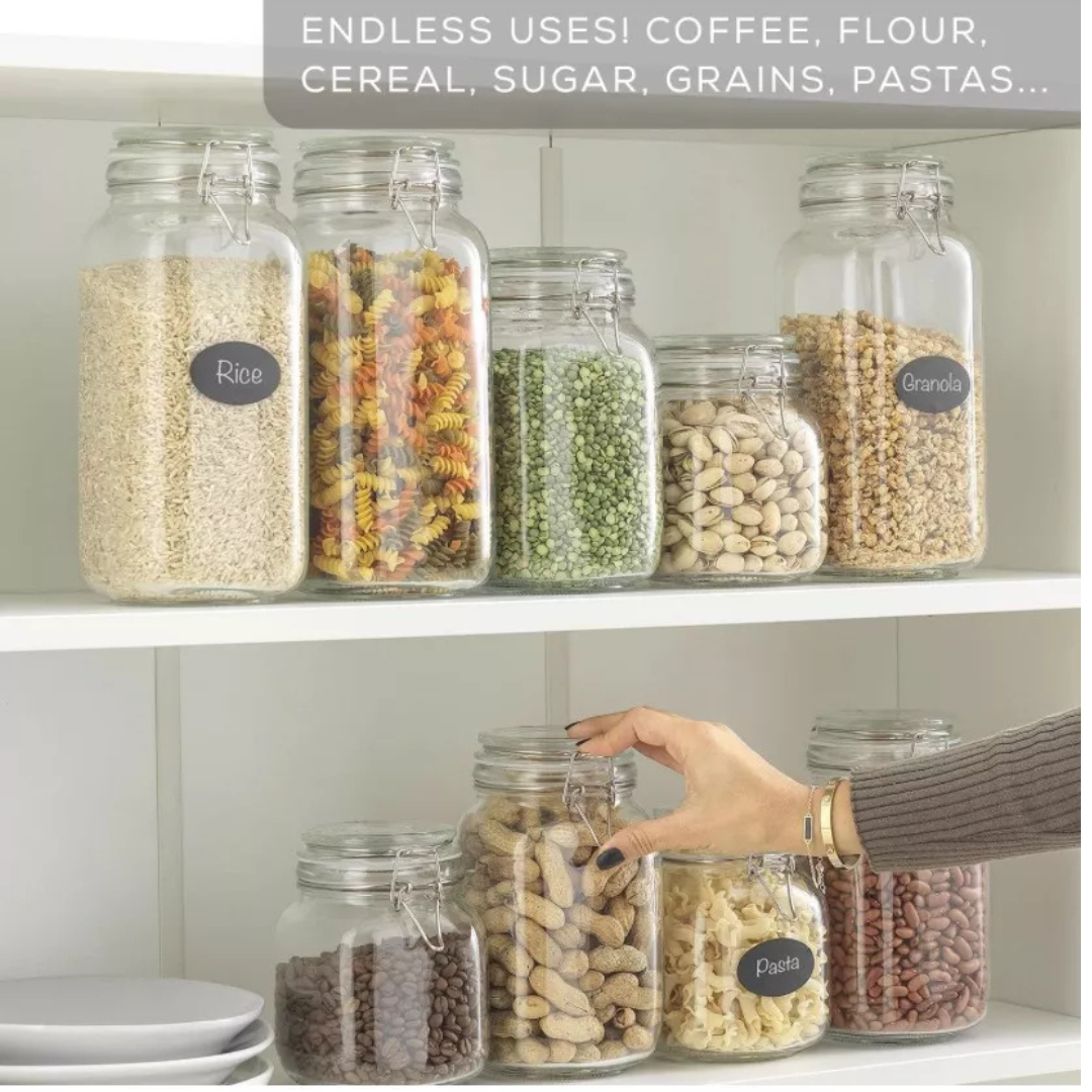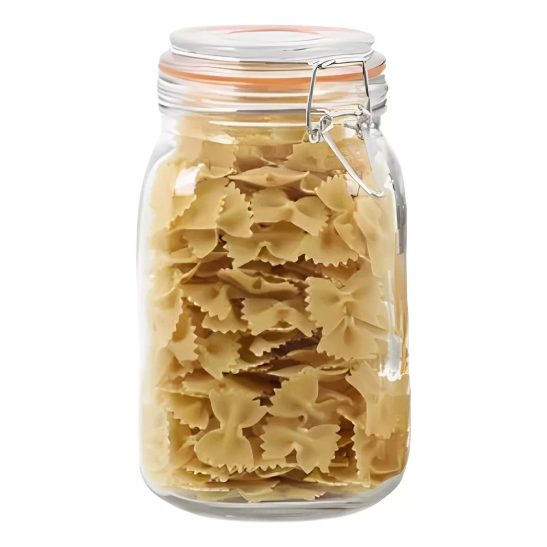 Con una capacidad generosa de 1.45 Litros, este tarro proporciona suficiente espacio para guardar una cantidad considerable de alimentos, como cereales, arroz, pasta, galletas, frutos secos, y mucho más. También es perfecto para almacenar ingredientes de cocina, como harina, azúcar, especias, y conservas caseras.