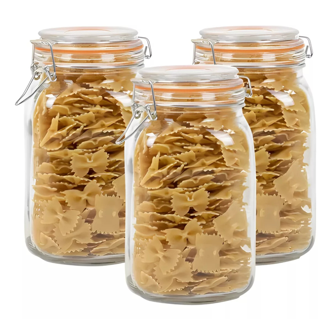 Pack 3 Frascos Canister de Vidrio 1.45 Litros Allegra Hermetico