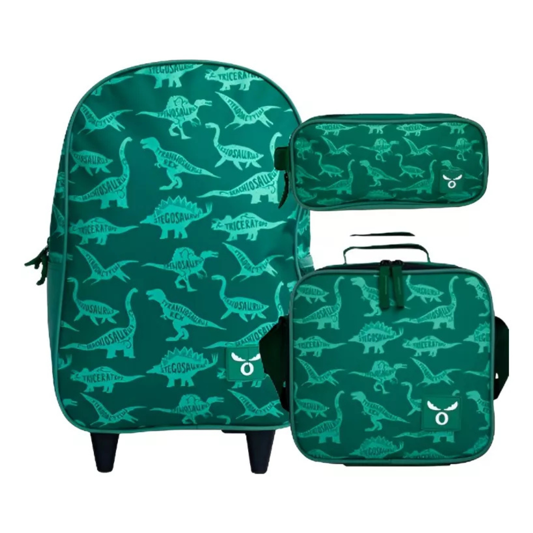 Pack Escolar Mochila con ruedas + Lonchera + Estuche Dinosaurio