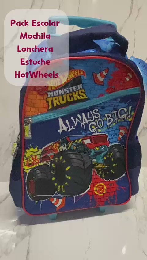 Pack Escolar Mochila + Estuche + Lonchera Hotweels