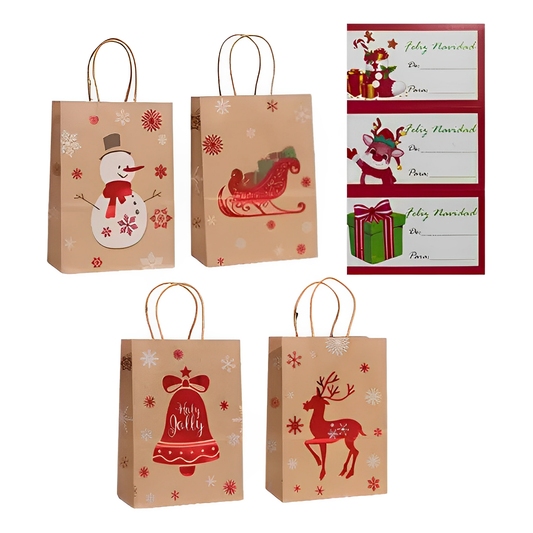 Dale un toque especial a tus regalos navideños con este set de bolsas de Navidad de papel Kraft, perfecto para envolver con estilo y sostenibilidad. Cada bolsa combina diseños festivos y la calidez del papel Kraft para una presentación única y ecológica, ideal para sorprender a tus seres queridos en estas fiestas.