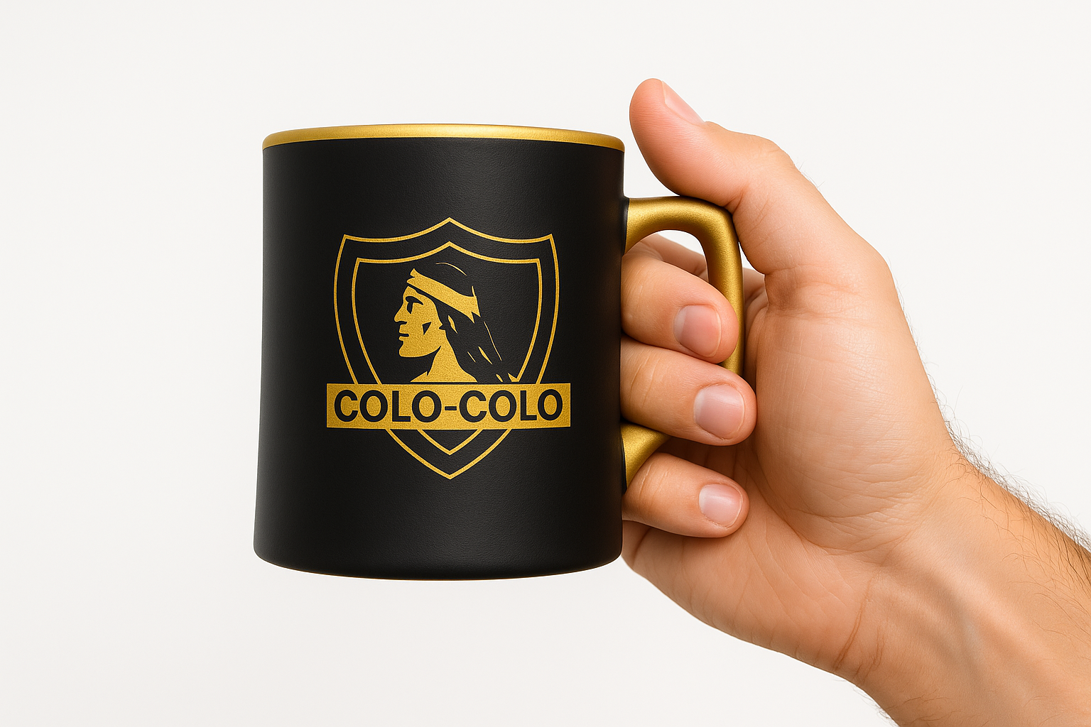 Diseño exclusivo: Color negro con bordes dorados que resaltan el escudo de Colo Colo.
