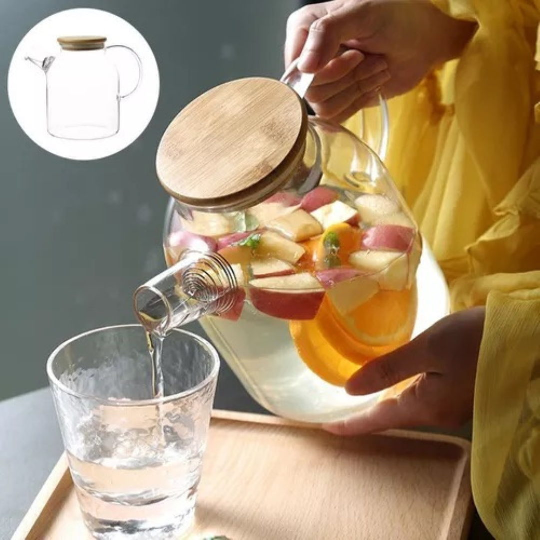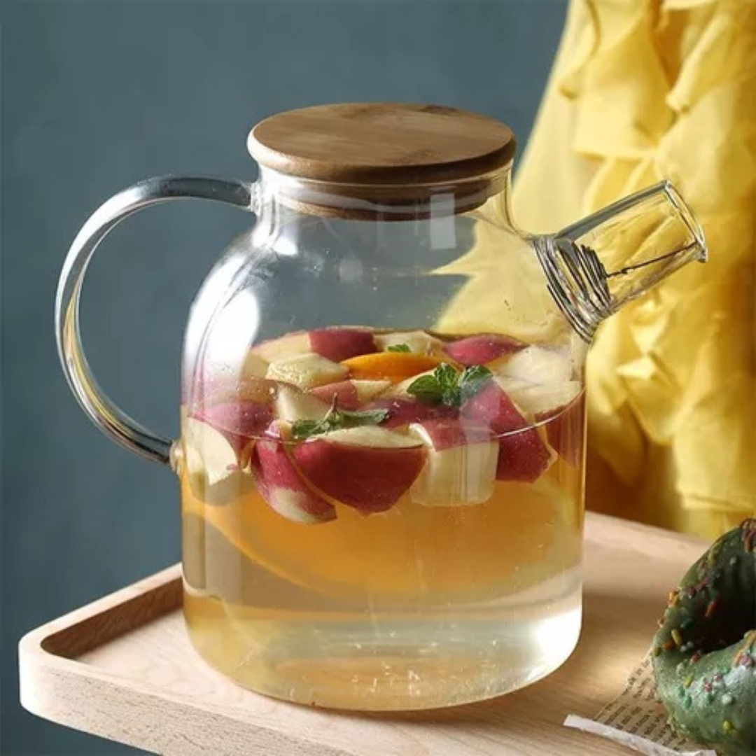 Tetera de Vidrio con Filtro y Tapa Bambu 1.8 Litros